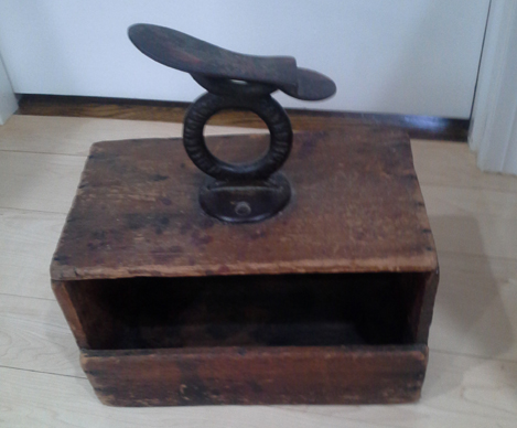 Photo of an antique shoe shine stand with advertising on the iron shoe for Whitmore Polishes. Quite an interesting piece. The shoe shine stand is old and the wood is mellow But I think it is quite unusual to find the advertising right on the piece. Asking $75.00
